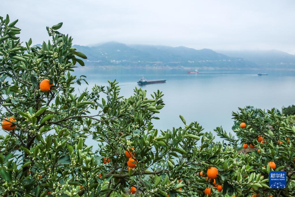 眼下,有“中國臍橙之鄉”美譽(yù)的三峽庫區湖北省秭歸縣長(cháng)江兩岸橙花盛開(kāi),晚熟臍橙掛滿(mǎn)枝頭,花果同樹(shù)的橙樹(shù)與峽江景觀(guān)相映如畫(huà)。