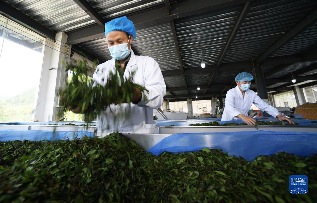 4月15日,工作人員在貴州省開(kāi)陽(yáng)縣南龍鄉田坎村一制茶廠(chǎng)制茶。