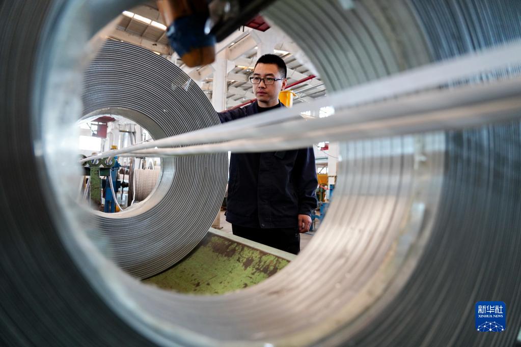 4月13日,唐山市一家線(xiàn)纜出口企業(yè)的工人在車(chē)間內工作。
