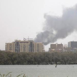 4月15日,蘇丹首都喀土穆冒出濃煙。