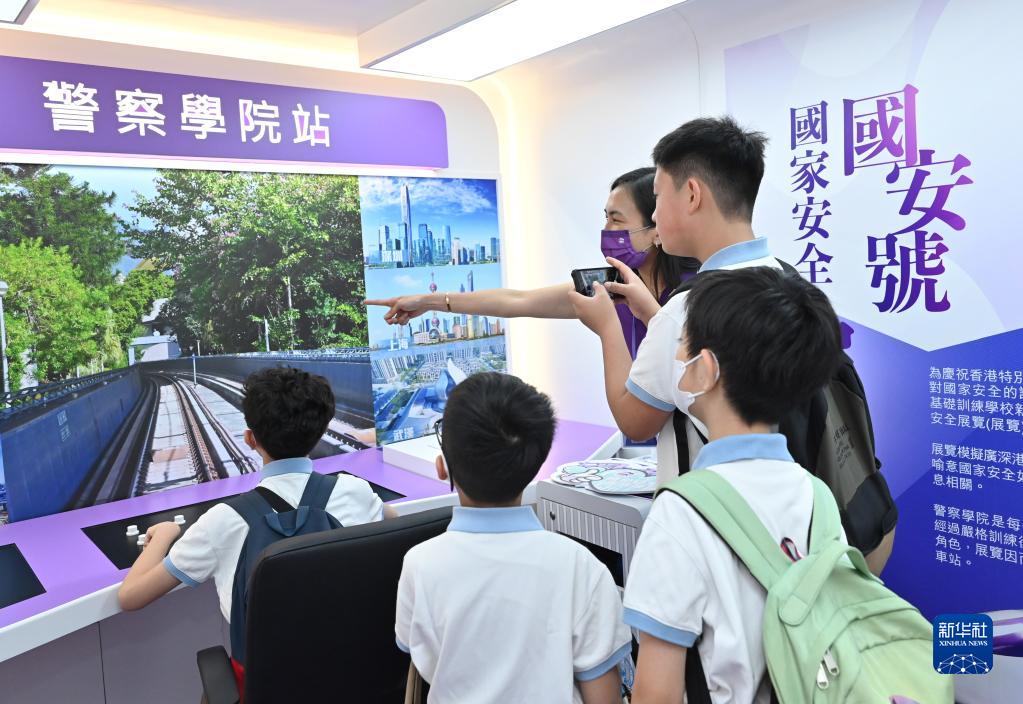 4月15日,在香港警察學(xué)院舉行的開(kāi)放日活動(dòng)上,學(xué)生們參觀(guān)“國安號”國家安全展覽,并通過(guò)游戲加深對國家安全的認識。新華社發(fā)(香港特區政府新聞處供圖)