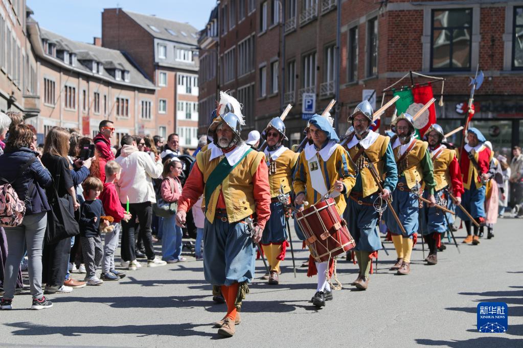 4月15日,身著(zhù)古裝的游行隊伍在比利時(shí)那慕爾市傳統民俗日活動(dòng)上行進(jìn)。