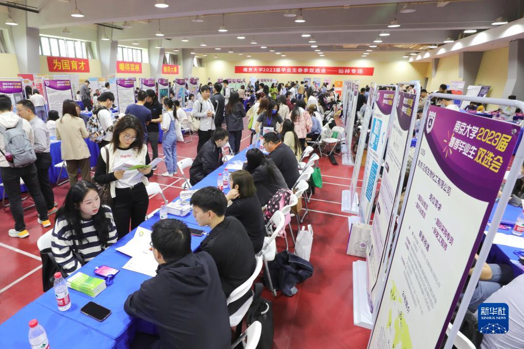 這是4月16日拍攝的南京大學(xué)2023屆畢業(yè)生春季雙選會(huì )現場(chǎng)。