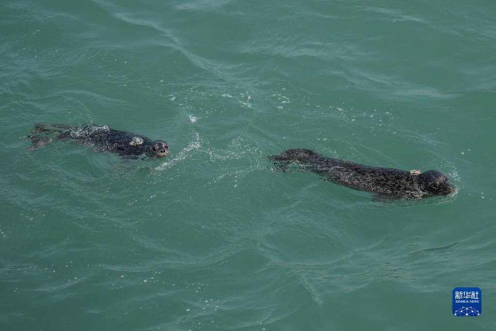 4月16日,被放歸的西太平洋斑海豹在大連市旅順口區附近海域活動(dòng)。