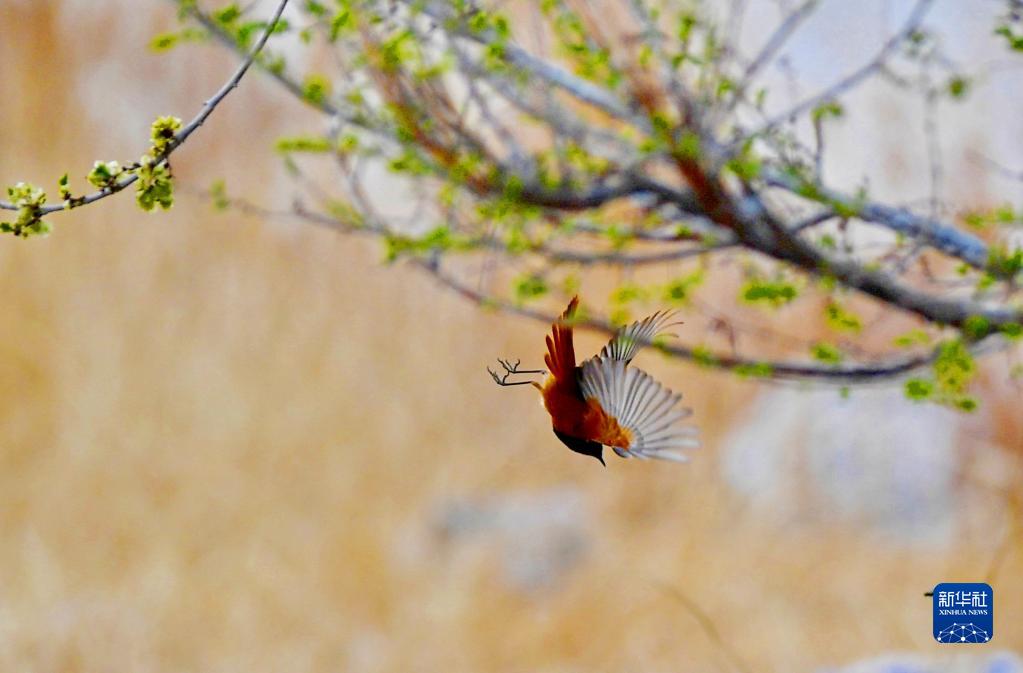 小鳥(niǎo)在拉薩河畔飛舞(4月16日攝)。