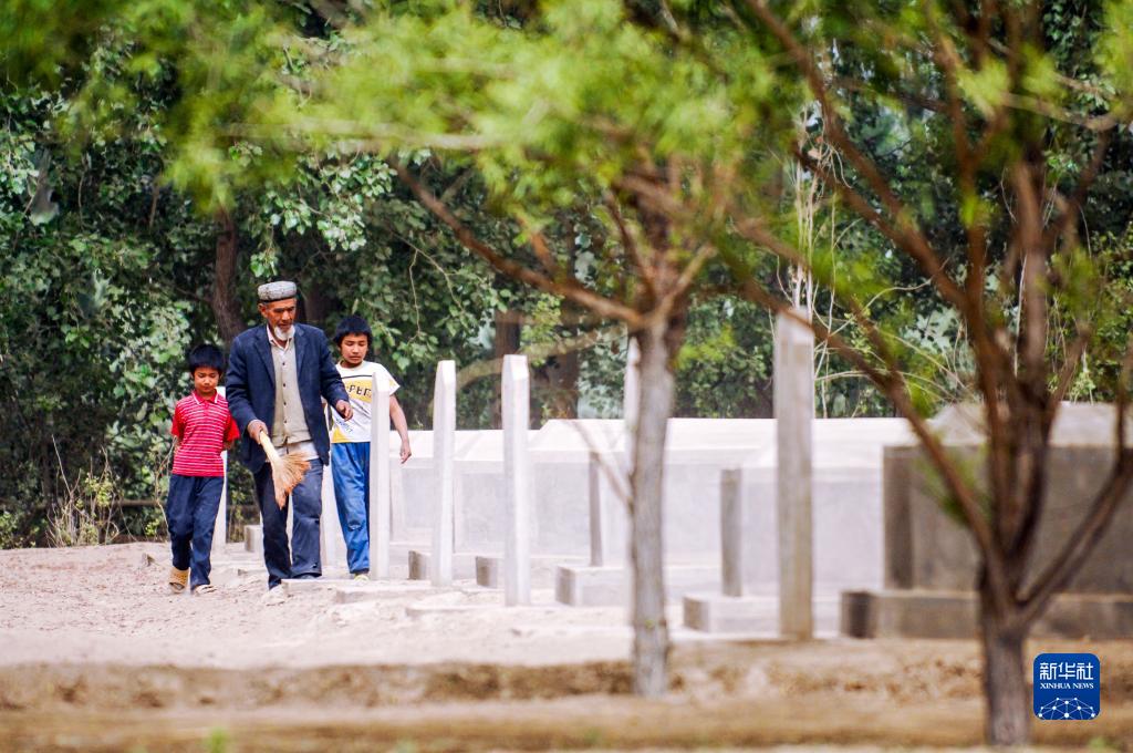 艾買(mǎi)爾·依提生前帶著(zhù)兩個(gè)孫子在陵園掃墓(2011年4月30日攝)。