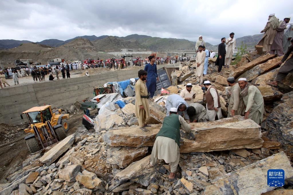 4月18日,在巴基斯坦開(kāi)伯爾-普什圖省多爾哈姆,人們在山體滑坡現場(chǎng)搜尋幸存者。
