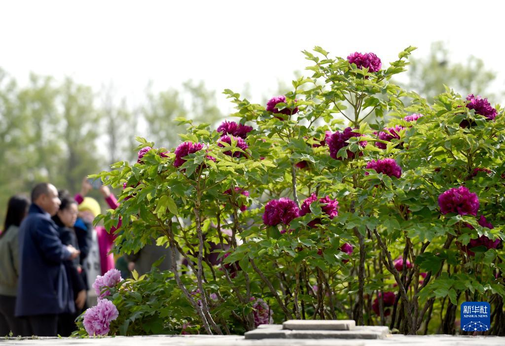 4月19日,游客在北京圓明園內欣賞盛開(kāi)的牡丹花。
