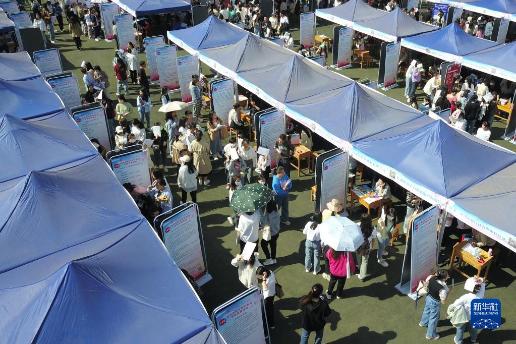這是4月19日拍攝的甘肅省女大學(xué)生就業(yè)專(zhuān)場(chǎng)招聘活動(dòng)現場(chǎng)(無(wú)人機照片)。