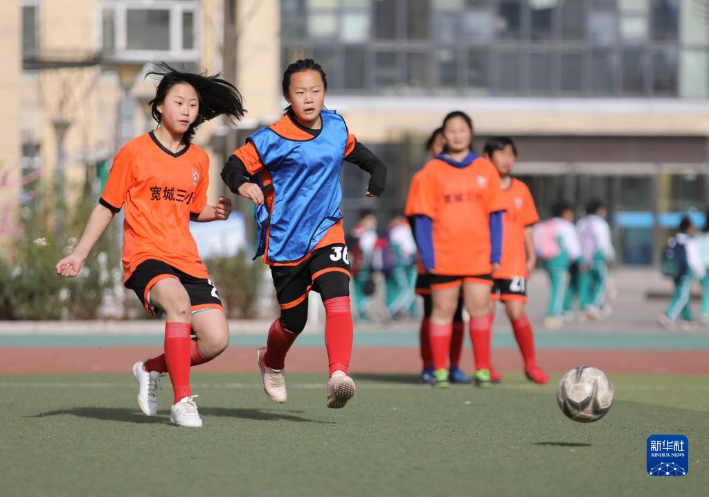 春日里,在河北省承德市寬城滿(mǎn)族自治縣第三小學(xué),女足隊員在春光里訓練,感受足球運動(dòng)的樂(lè )趣。近年來(lái),寬城縣積極推進(jìn)“足球進(jìn)校園”活動(dòng),通過(guò)在中小學(xué)開(kāi)設足球課程,成立足球社團、舉辦足球比賽等形式,讓更多的孩子接觸足球,增強身體素質(zhì)。