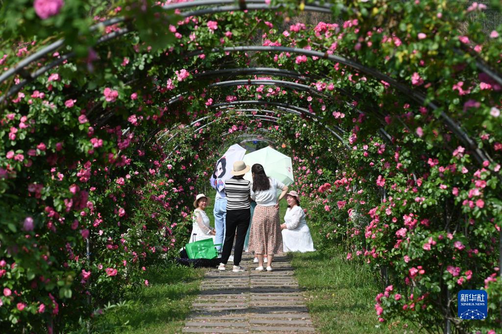 4月19日,游客在四川省內江市資中縣銀山鎮農業(yè)主題公園內賞花游玩。