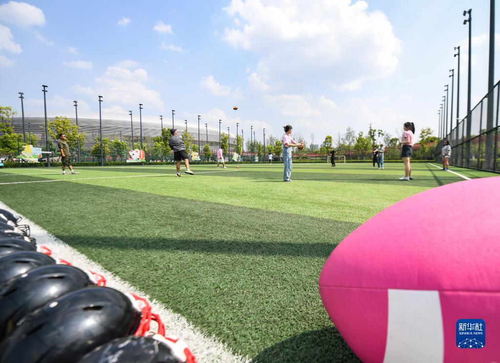 4月19日,在成都東安湖體育公園,體育愛(ài)好者在 “潮流運動(dòng)會(huì )”上體驗橄欖球。