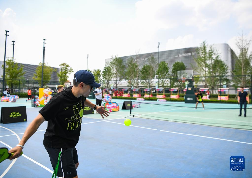 4月19日,在成都東安湖體育公園,體育愛(ài)好者在 “潮流運動(dòng)會(huì )”上打匹克球。