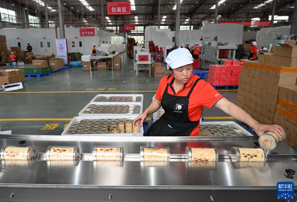 4月19日,在全國農村創(chuàng )業(yè)園區(基地)——辰頤嚴選產(chǎn)業(yè)園的電商農產(chǎn)品深精加工車(chē)間,員工在檢查農產(chǎn)品包裝。