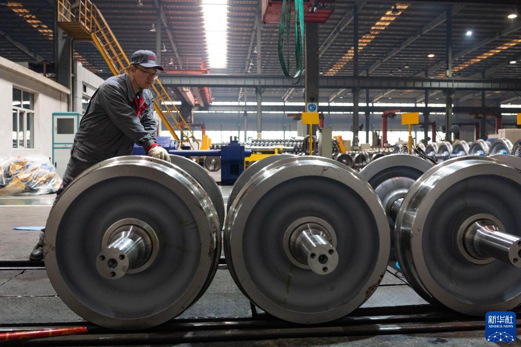 4月19日,在中車(chē)齊車(chē)公司的生產(chǎn)車(chē)間,工人在進(jìn)行生產(chǎn)作業(yè)。
