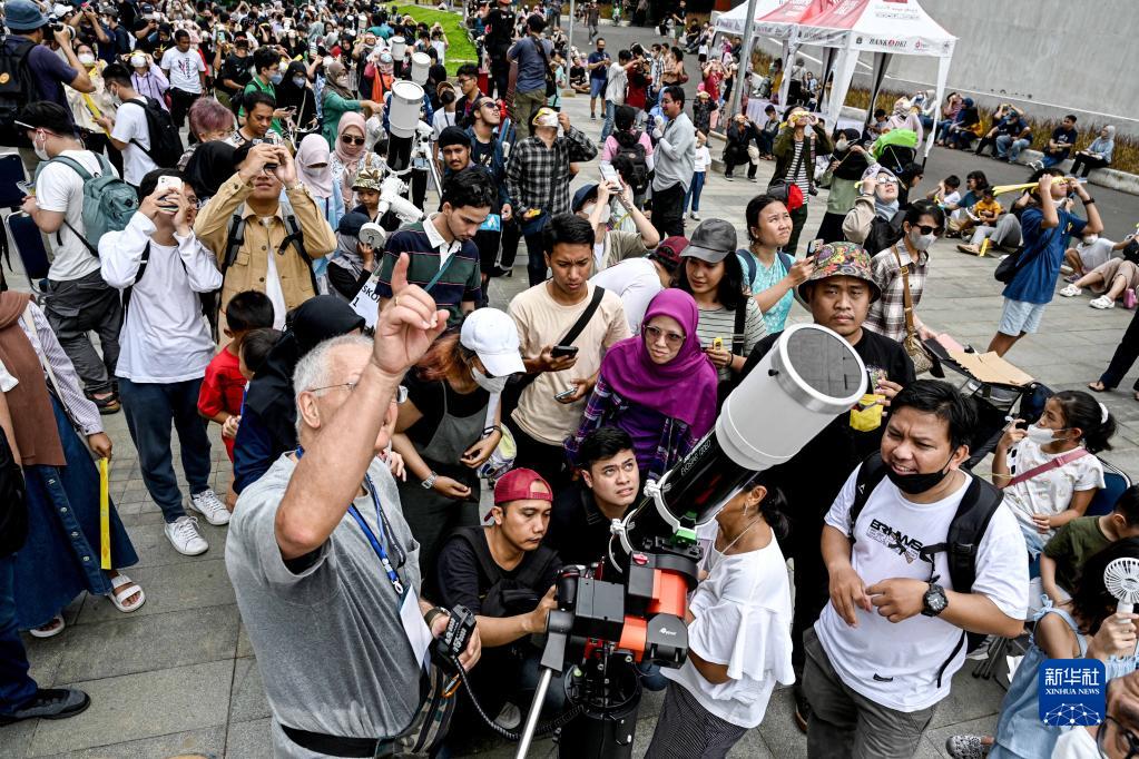 4月20日,人們在印度尼西亞雅加達觀(guān)看日食。