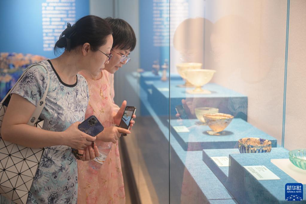 4月20日,觀(guān)眾在海南省博物館觀(guān)看“瑠光異彩——絲路上的古玻璃器藝術(shù)展”。