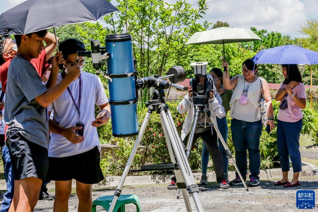 4月20日,人們在菲律賓奎松市觀(guān)測日食。
