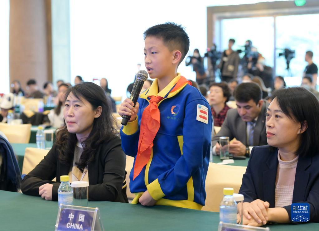 當日,天宮對話(huà)——神舟十五號航天員乘組與上海合作組織國家青少年問(wèn)答活動(dòng)舉行,青少年代表向神舟十五號航天員提問(wèn),開(kāi)展了一場(chǎng)有趣的“天地問(wèn)答”。新華社記者 李賀 攝