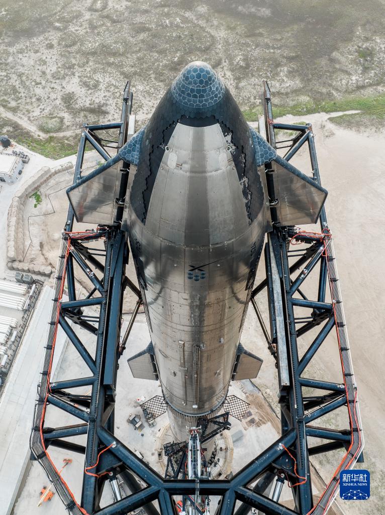 這張4月11日公布的圖片顯示,美國太空探索技術(shù)公司的新一代重型運載火箭“星舟”以及飛船集成系統在位于得克薩斯州的一處發(fā)射基地等待升空。