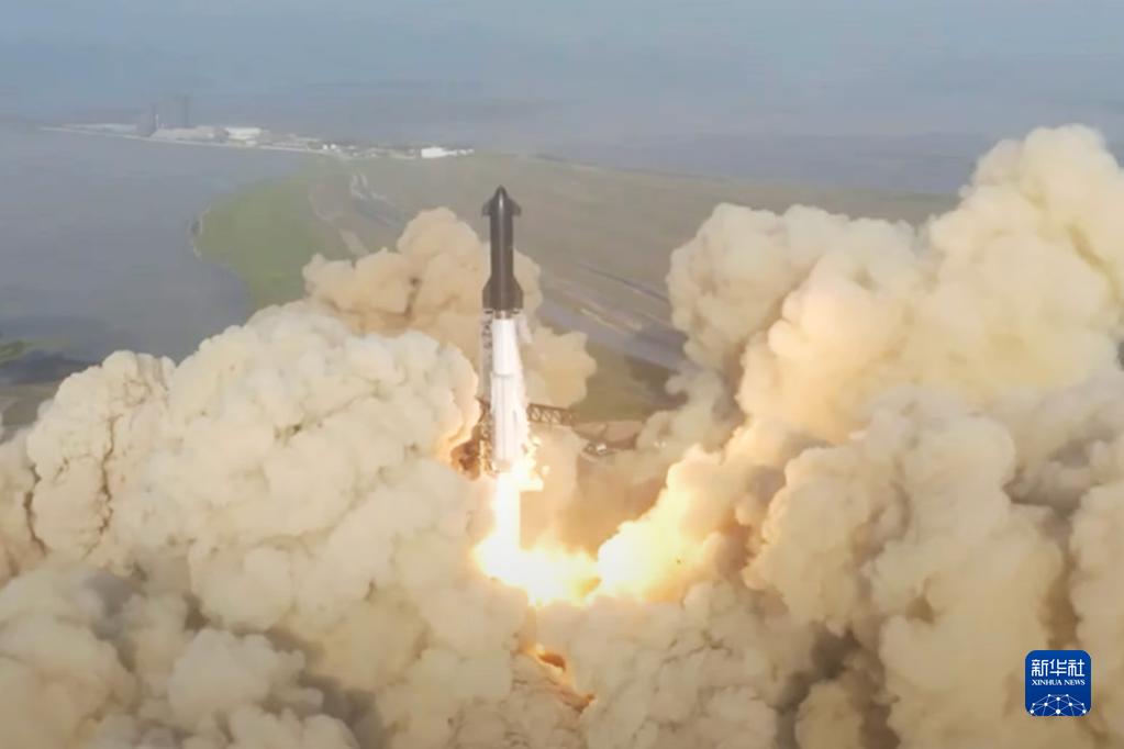 這張4月20日由美國太空探索技術(shù)公司提供的視頻截取的圖片顯示,新一代重型運載火箭“星舟”以及飛船集成系統在位于得克薩斯州博卡奇卡的發(fā)射基地升空。