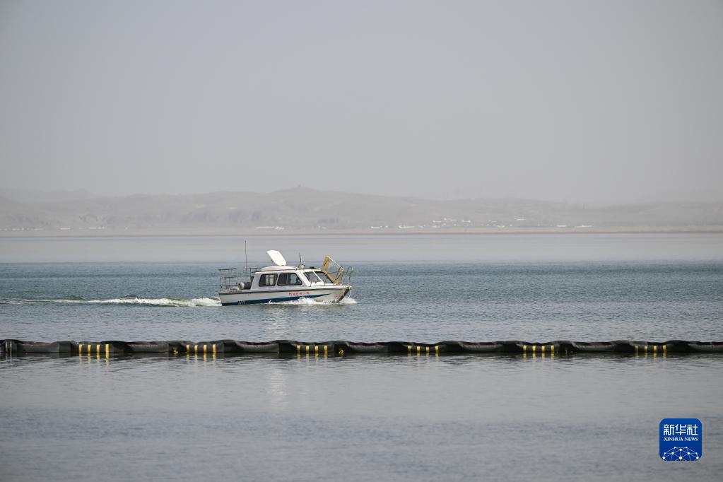 4月18日,胡登雨在岱海開(kāi)船巡護。