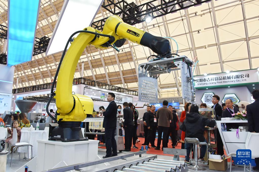 4月21日,參會(huì )者在展會(huì )食品加工機械展區參觀(guān)。