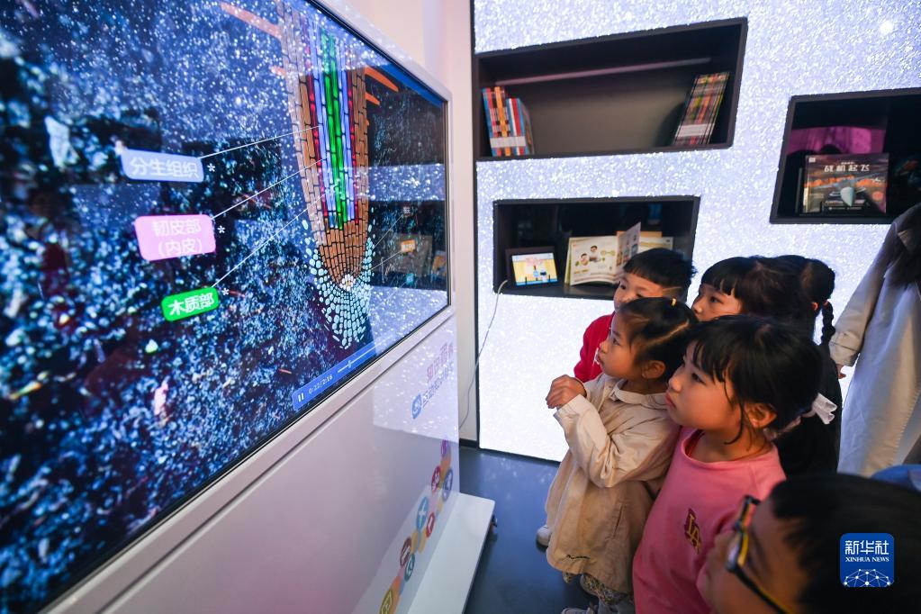 4月21日,在嘉興市圖書(shū)館元宇宙閱讀體驗館,小朋友們在老師的幫助下學(xué)習動(dòng)植物知識。