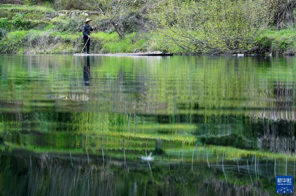 “小小竹排江中游,巍巍青山兩岸走?!鄙鲜兰o七十年代,電影《閃閃的紅星》中潘冬子劃竹排的場(chǎng)景堪稱(chēng)經(jīng)典,而取景地便是古徽州“一府六縣”之一的江西省婺源縣。婺源全縣面積近3000平方公里,境內水域狹長(cháng)、水網(wǎng)密布,這里“八分半山一分田,半分水路和莊園”。水面上常有當地人手持撐篙,左右翻飛,劃出道道弧線(xiàn),激起朵朵浪花。人立排上,排浮水面,悠悠前行,行云流水。