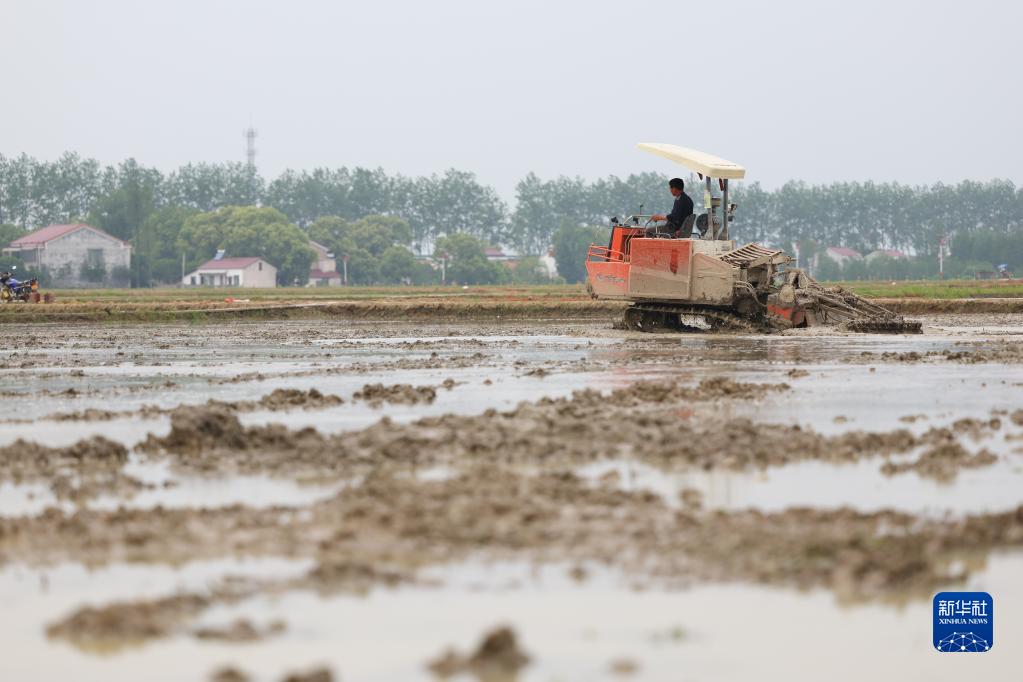 4月21日,在湖南省益陽(yáng)市赫山區中塘村,農民駕駛農機在田間作業(yè)。