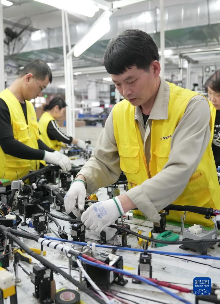 4月20日,工人在秦皇島市海港區一家汽車(chē)電路企業(yè)的生產(chǎn)車(chē)間工作。