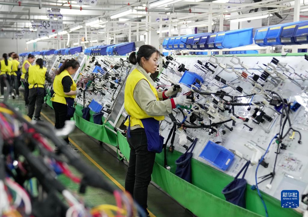 4月20日,工人在秦皇島市海港區一家汽車(chē)電路企業(yè)的生產(chǎn)車(chē)間工作。