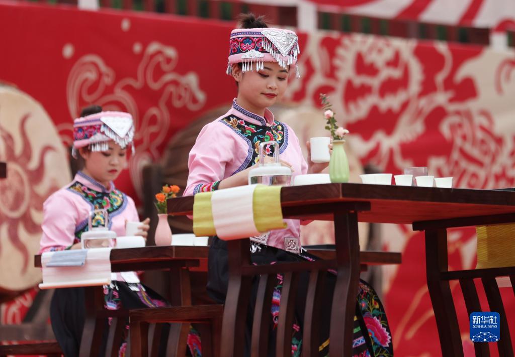 4月21日,茶藝師在宣恩縣伍家臺貢茶文化嘉年華活動(dòng)現場(chǎng)表演茶藝。