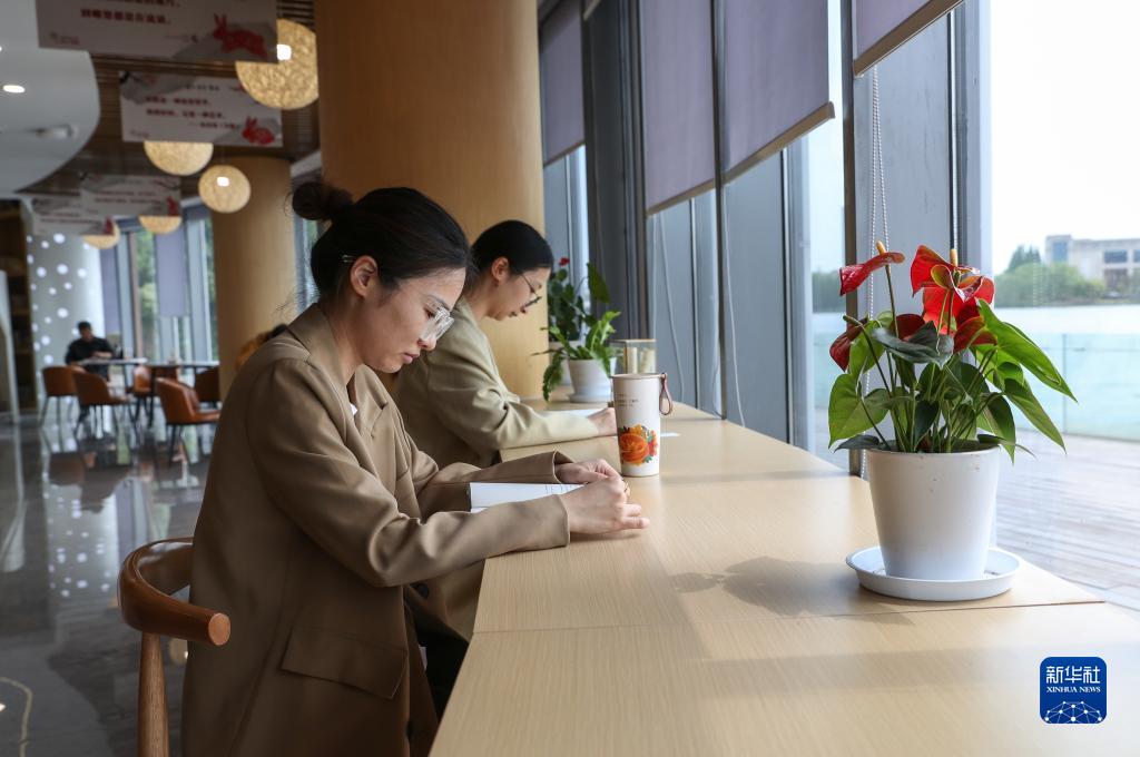4月21日,讀者在張家港市沙洲湖益空間·源書(shū)房閱讀。