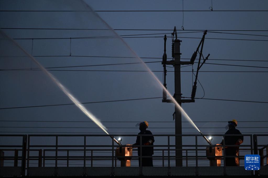 4月20日,中國鐵路青藏集團有限公司西寧供電段格爾木大修車(chē)間大修網(wǎng)工區檢修工使用高壓沖洗水槍對絕緣子設備進(jìn)行清洗。