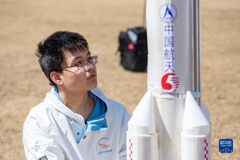 4月22日,在哈爾濱工業(yè)大學(xué)體育場(chǎng),航模協(xié)會(huì )的學(xué)生在航模點(diǎn)火發(fā)射前進(jìn)行調試。