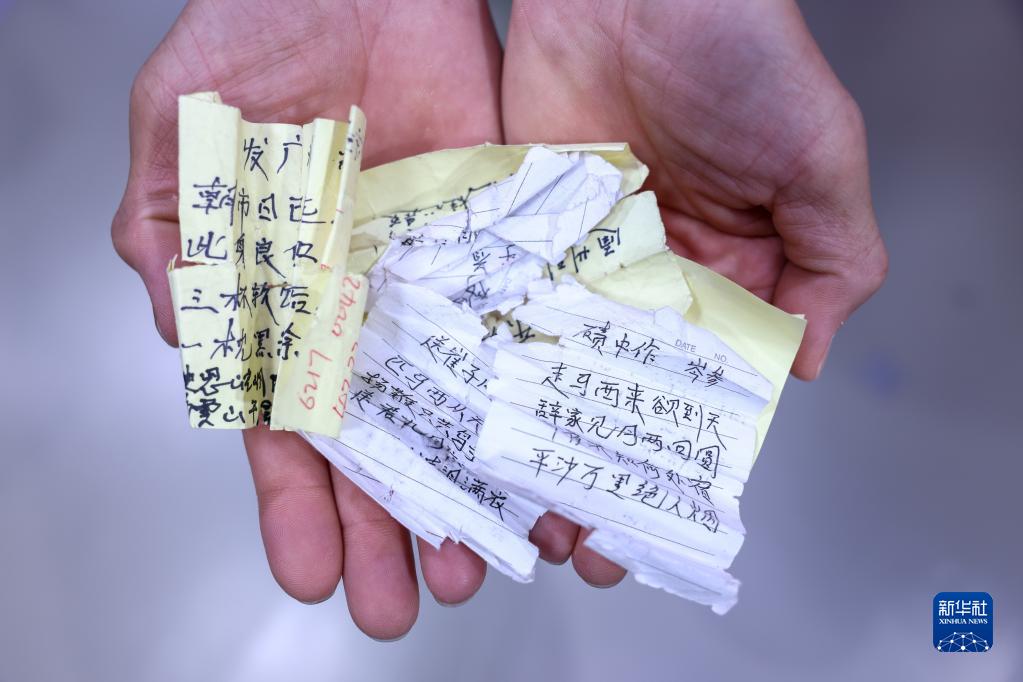 朱彥軍展示自己為了背誦詩(shī)詞抄錄的便簽(4月12日攝)。新華社記者 劉金海 攝