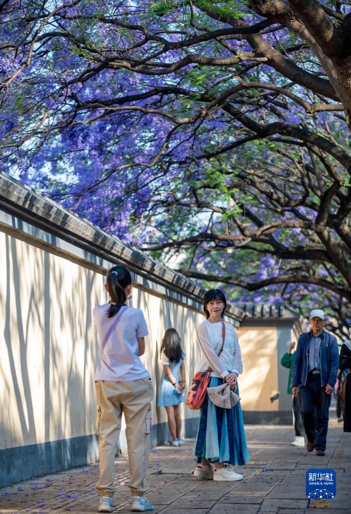云南昆明:藍花楹綻放