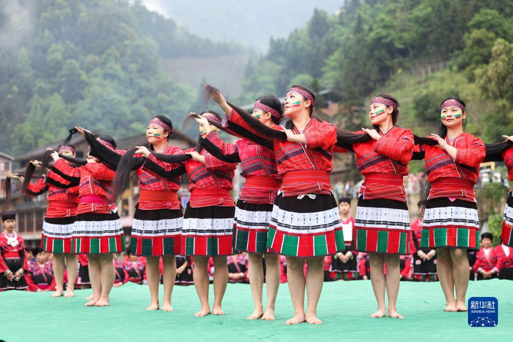 當日是農歷三月初三,廣西桂林市龍勝各族自治縣黃洛瑤寨舉行“三月三龍脊長(cháng)發(fā)節”活動(dòng),吸引游客前來(lái)參觀(guān)游覽。黃洛瑤寨的紅瑤族婦女有世代相傳的蓄發(fā)習俗,平均頭發(fā)長(cháng)度達1.7米,最長(cháng)的有2.72米。
