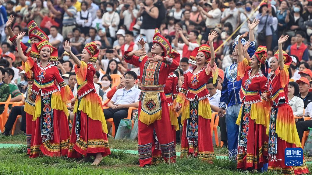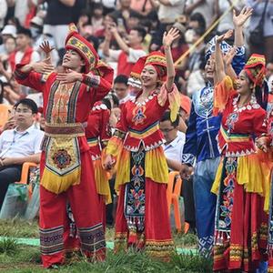 當日,廣西欽州市在欽北區貴臺鎮洞利江畔舉行實(shí)景演出,歡慶“三月三”傳統佳節。