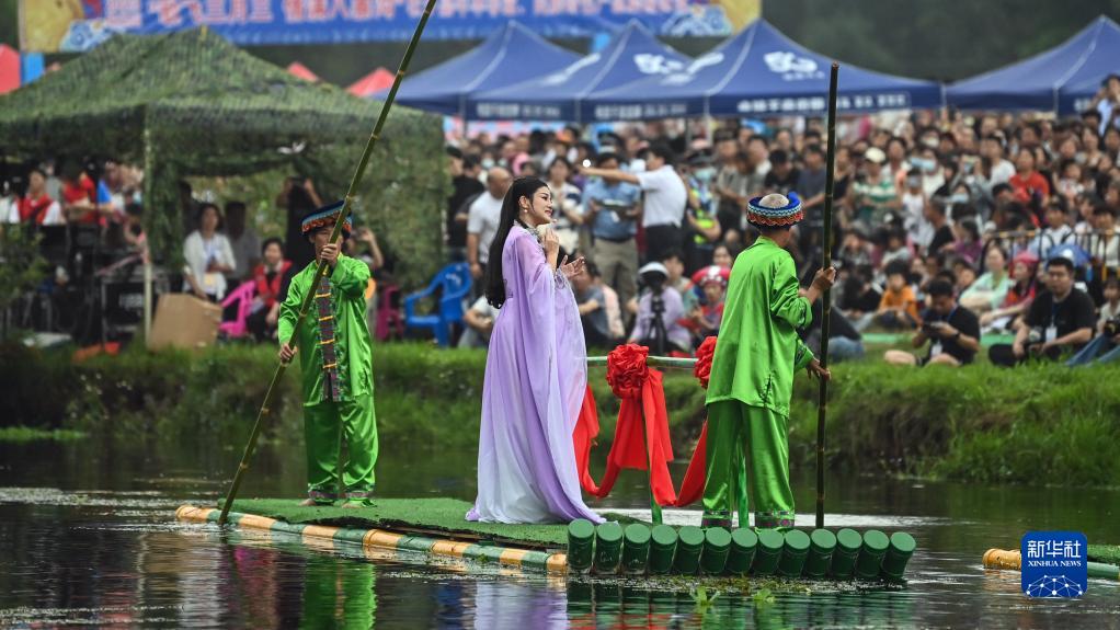 當日,廣西欽州市在欽北區貴臺鎮洞利江畔舉行實(shí)景演出,歡慶“三月三”傳統佳節。
