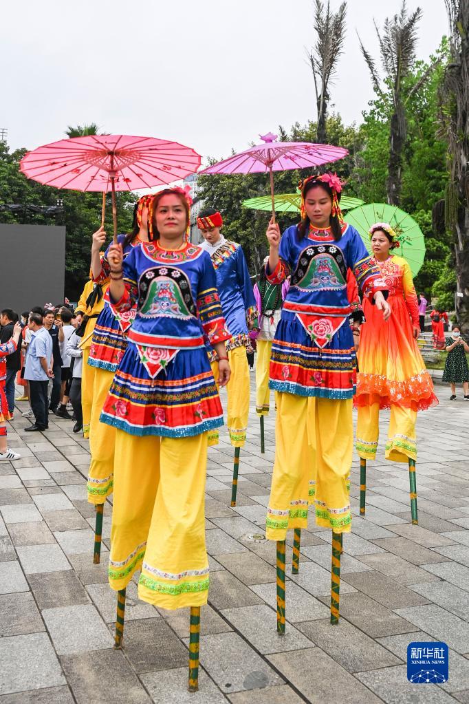 4月22日,在中國—東盟(南寧)非物質(zhì)文化遺產(chǎn)周開(kāi)幕現場(chǎng),演員在表演踩高蹺。