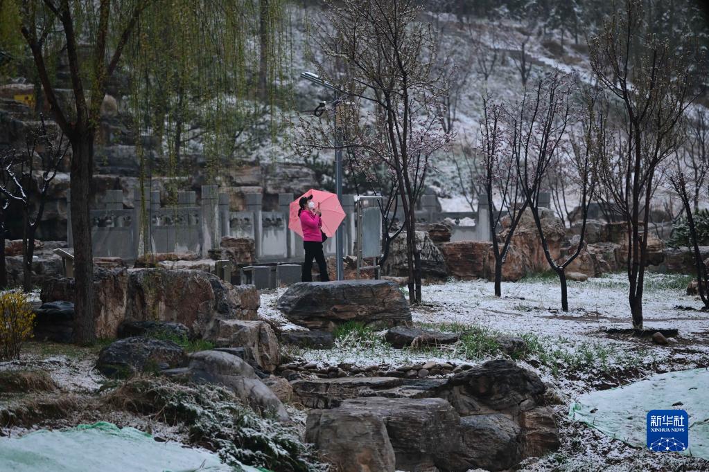 4月22日,市民在青海省西寧市城西區觀(guān)雪。