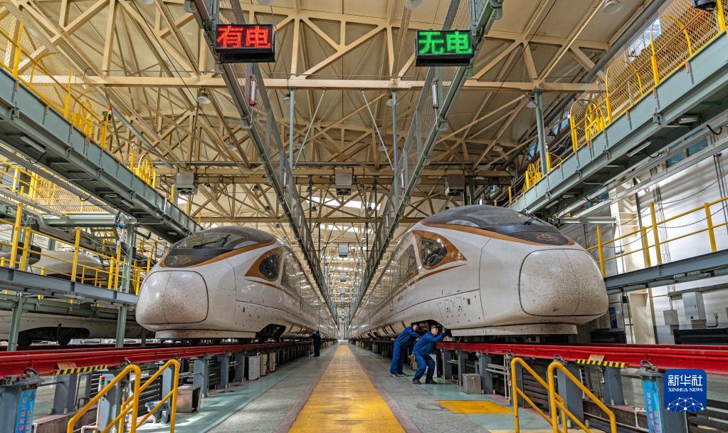 “五一”小長(cháng)假前夕,中國鐵路沈陽(yáng)局集團有限公司組織沈陽(yáng)動(dòng)車(chē)段對高鐵列車(chē)進(jìn)行周密檢查,確保動(dòng)車(chē)組安全運行,提升旅客出行體驗。