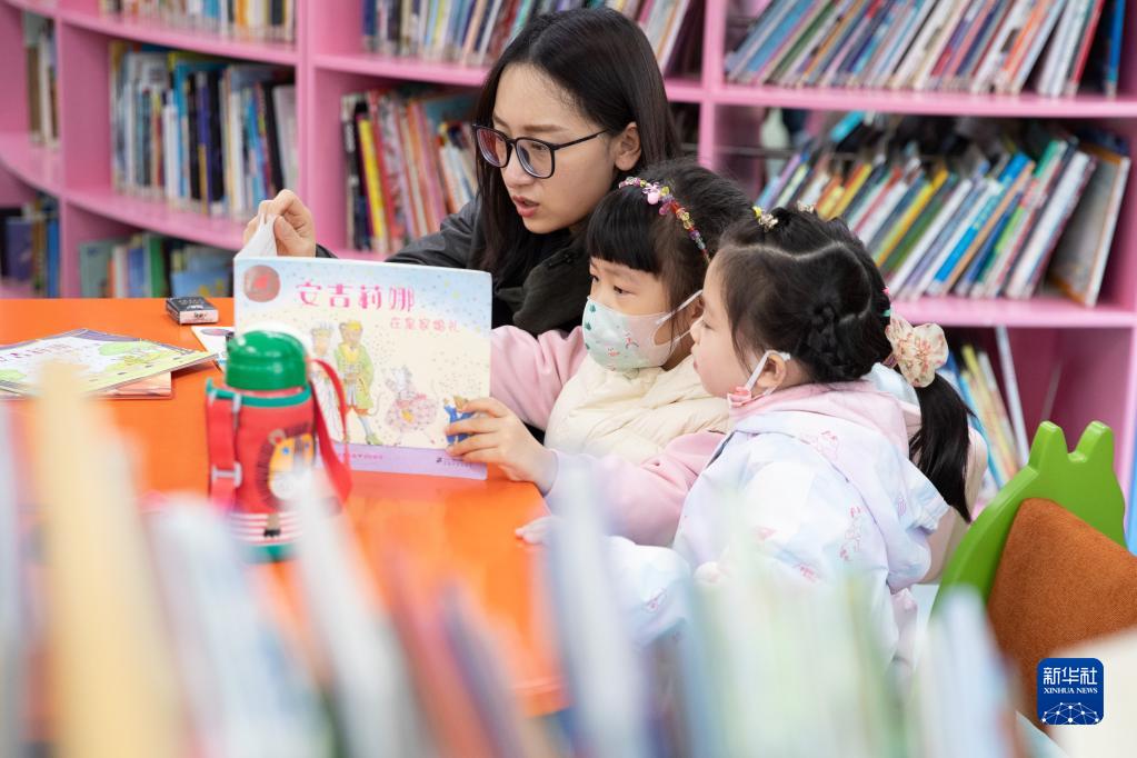 4月23日,在黑龍江省圖書(shū)館親子共讀閱覽室,孩子和家長(cháng)一起閱讀書(shū)籍。