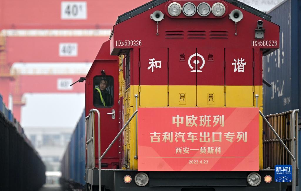4月23日,中歐班列長(cháng)安號吉利汽車(chē)出口專(zhuān)列在西安國際港站準備發(fā)車(chē)。
