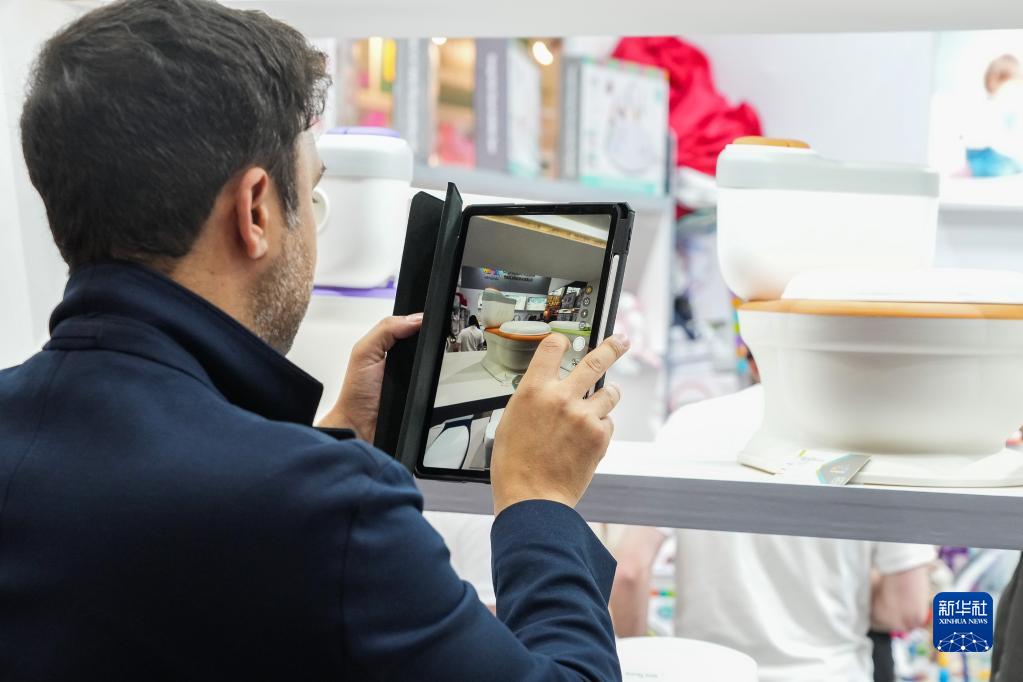4月23日,一名采購商在第133屆廣交會(huì )二期孕嬰童展區拍攝兒童馬桶產(chǎn)品。