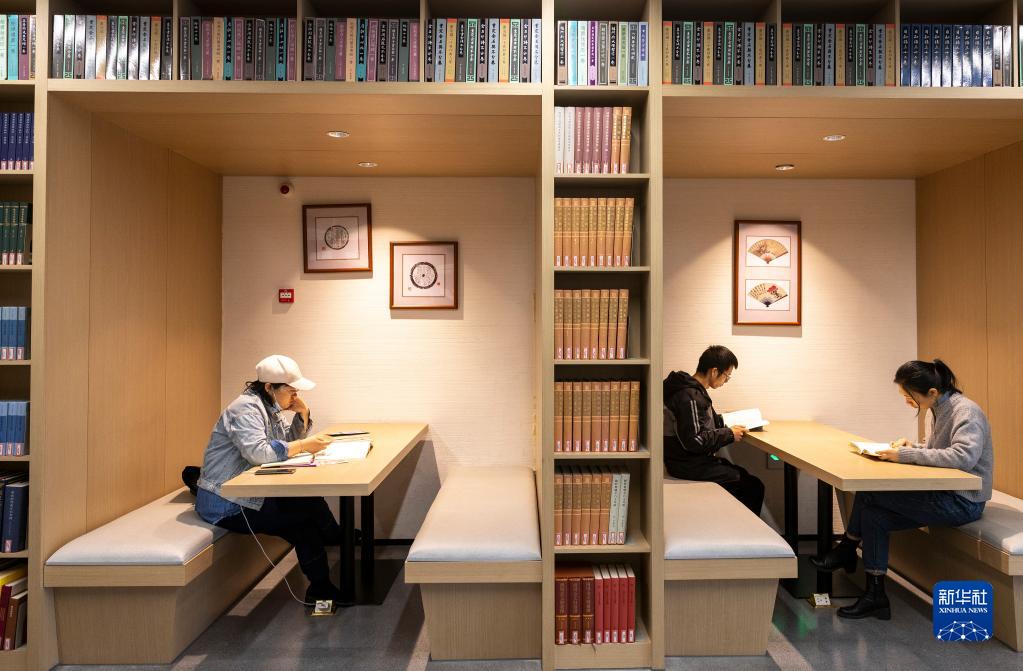 4月23日,市民在浙江省諸暨市陶朱街道浣江書(shū)房金石學(xué)館看書(shū)。