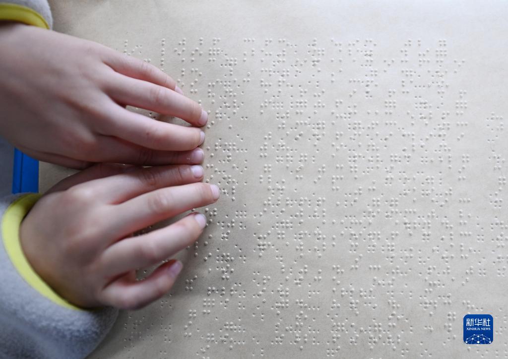 4月21日,湖北襄陽(yáng)市特殊教育學(xué)校的視障學(xué)生在“閱讀”盲文圖書(shū)。