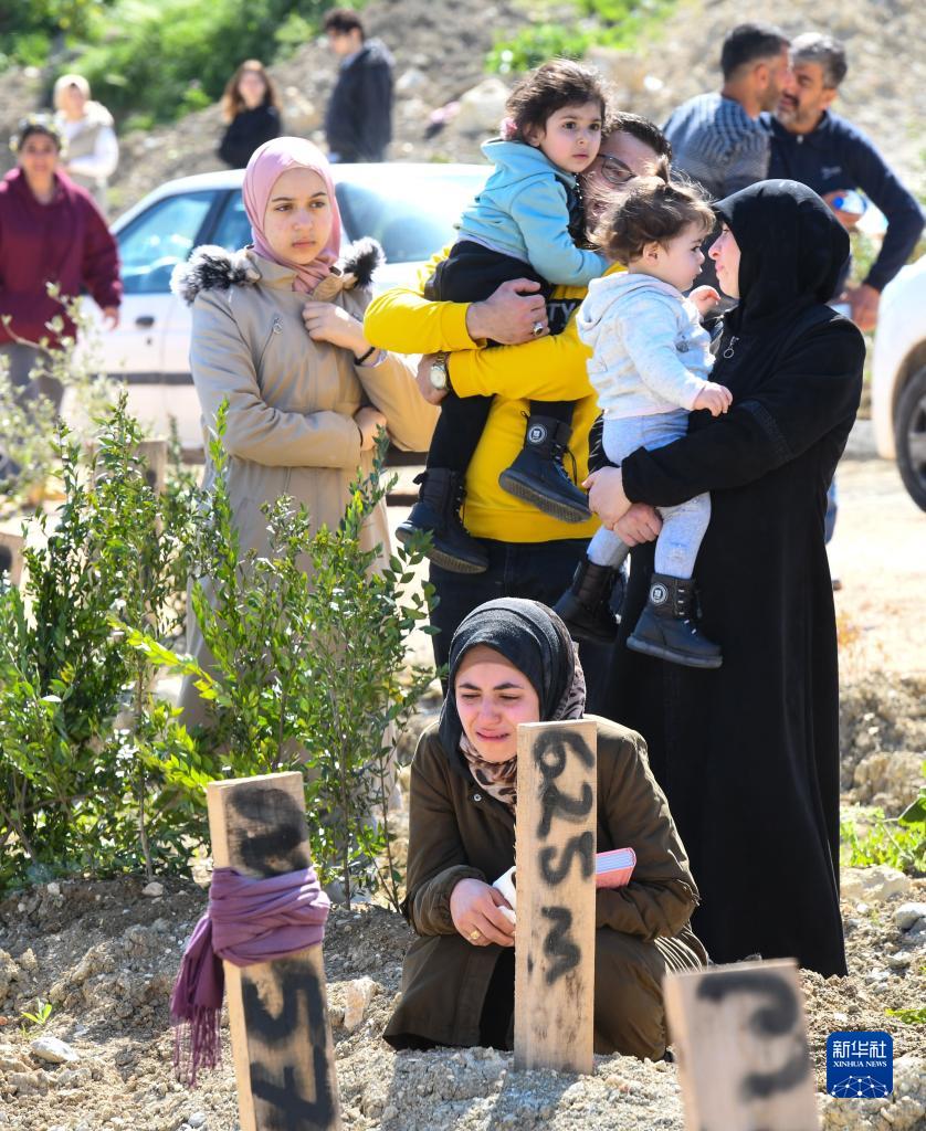 4月23日,人們在土耳其哈塔伊一處墓地悼念在地震中遇難的親人。新華社發(fā)(穆斯塔法·卡亞 攝)